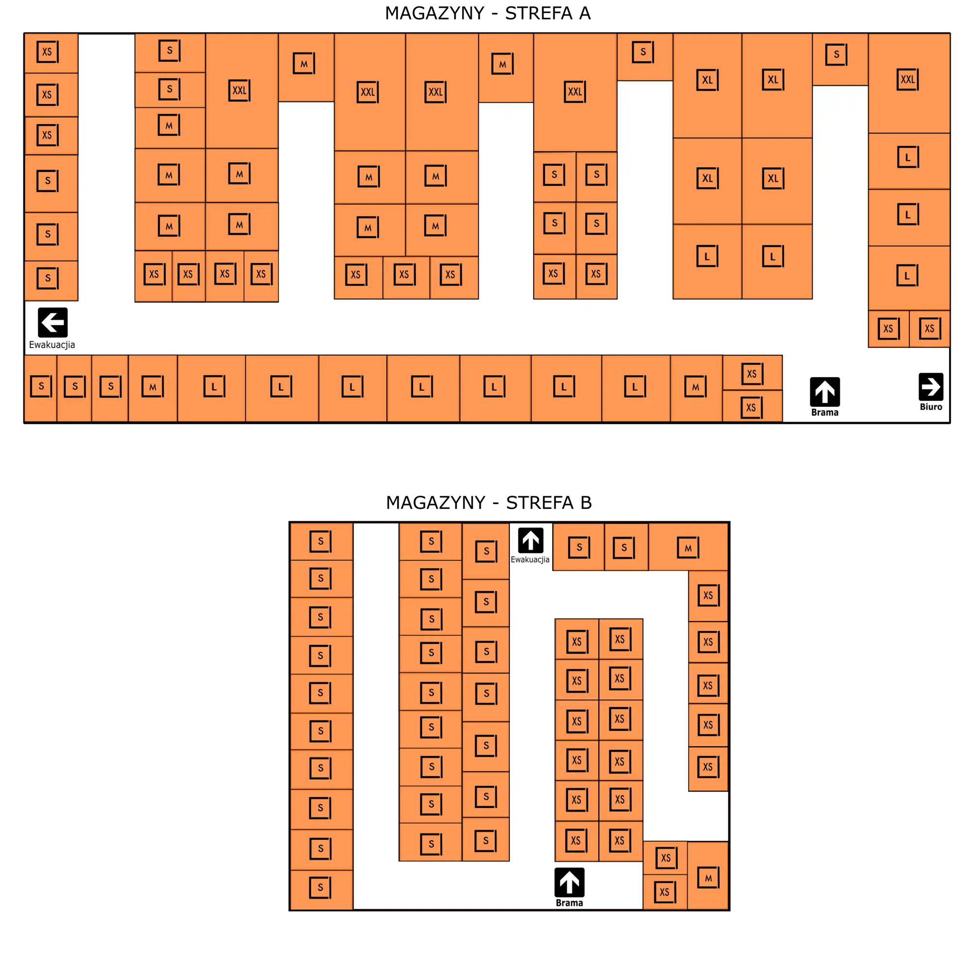 Wymiary magazynów według rozmiarów Strefa A