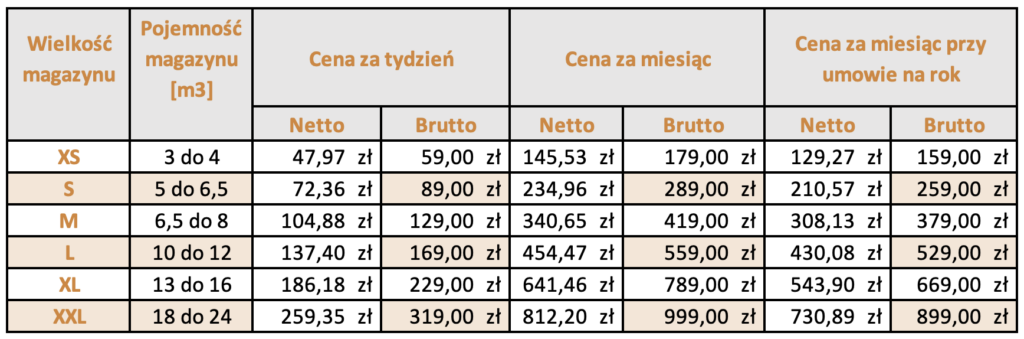 Wymiary magazynów